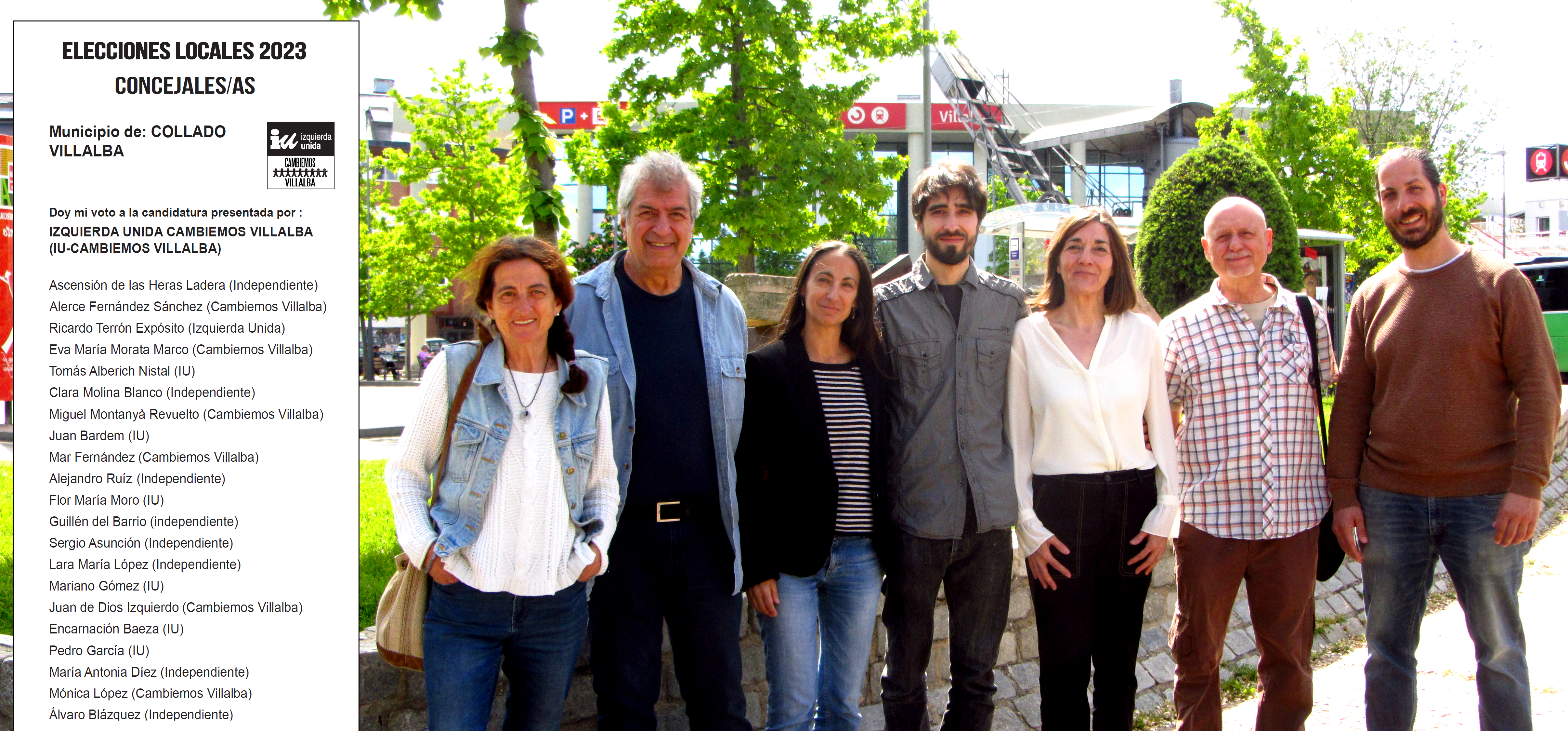 Desde Izquierda Unida y Cambiemos Villalba hemos sumado nuestras fuerzas para desarrollar un programa electoral con el que transformar Collado Villalba en una ciudad con servicios de calidad para tod@s sus vecin@s, más segura, respetuosa con e integradora de la naturaleza y ecológicamente sostenible. Por ello, hemos recopilado 340 propuestas concretas a través de un proceso participativo que plantean el proyecto y modelo de ciudad hacia el que la coalición pretende avanzar en los próximos años, con el fin de convertir a nuestra ciudad en un municipio a la altura de los retos del siglo XXI.